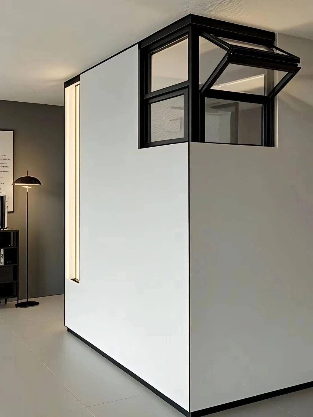 铝合金极窄旋转窗也不错,上通风下采光。工程量很小,提前切割好墙洞,后期安装窗户即可。